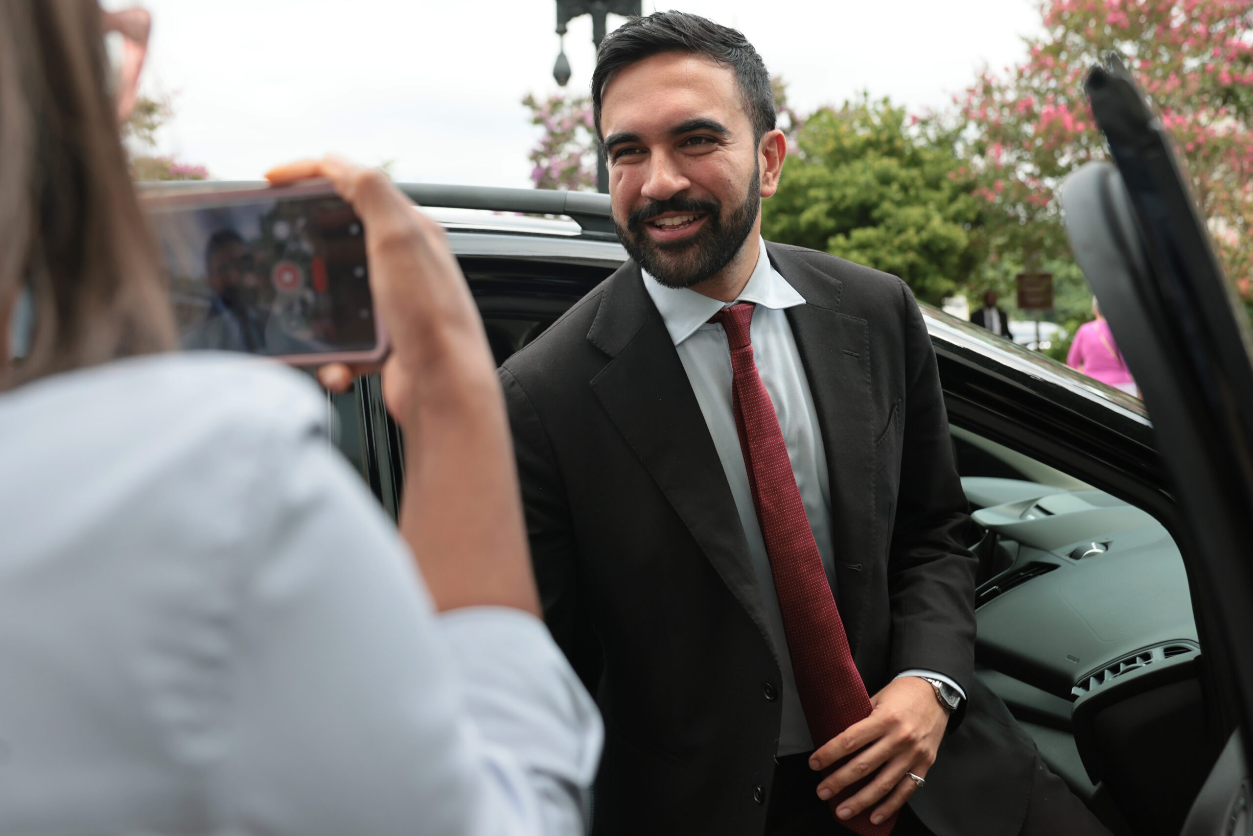 NYC Zohran Mamdani briefly speaks with reporters as he leaves the Dirksen Senate Office Building on July 16, 2025 in Washington, DC.